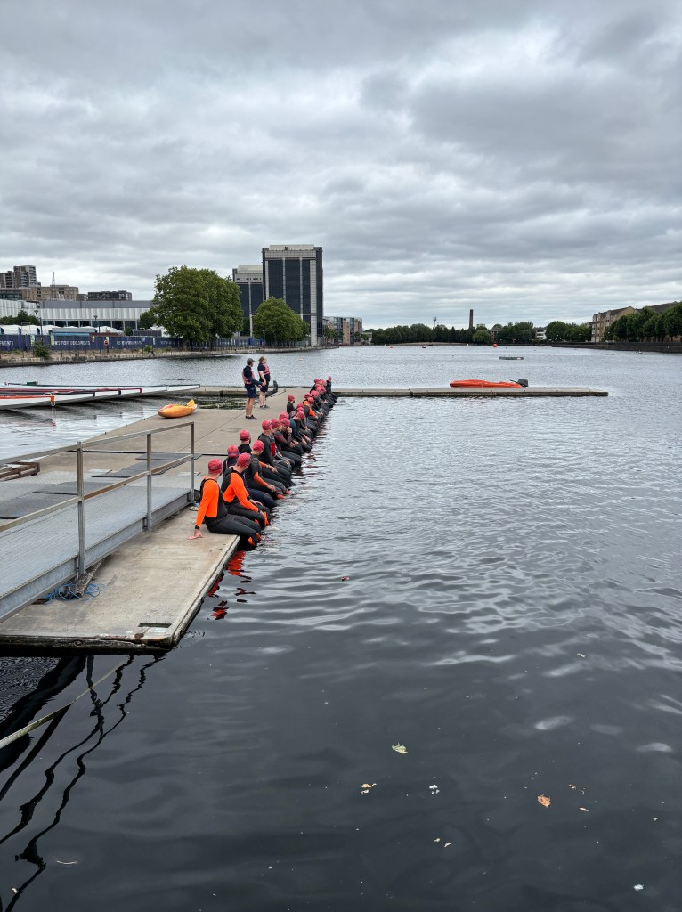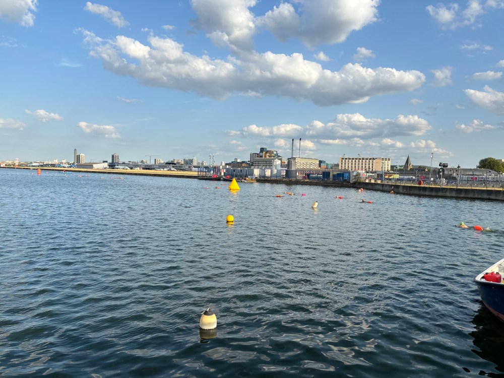 Next up was Canary Wharf in London run by Turner Swim. This event felt super chill. The water was placid and the number of swimmers was only around 30 per heat. Canary Wharf won’t win any beauty contests but there are remnants of an industrial past combined with endless new high rises to make it somewhat interesting. Again, the event management was brilliant and there was a friendly and encouraging atmosphere. It was a mandatory wetsuit event (a bit surprising) and my silly mistake was to put my wetsuit on backwards and head out to the start. Luckily, I realised before anyone spotted and in enough time to quickly head back to the changing rooms. The swim itself went well despite the hissing swans on the finish line that made getting out of the water an adventure.