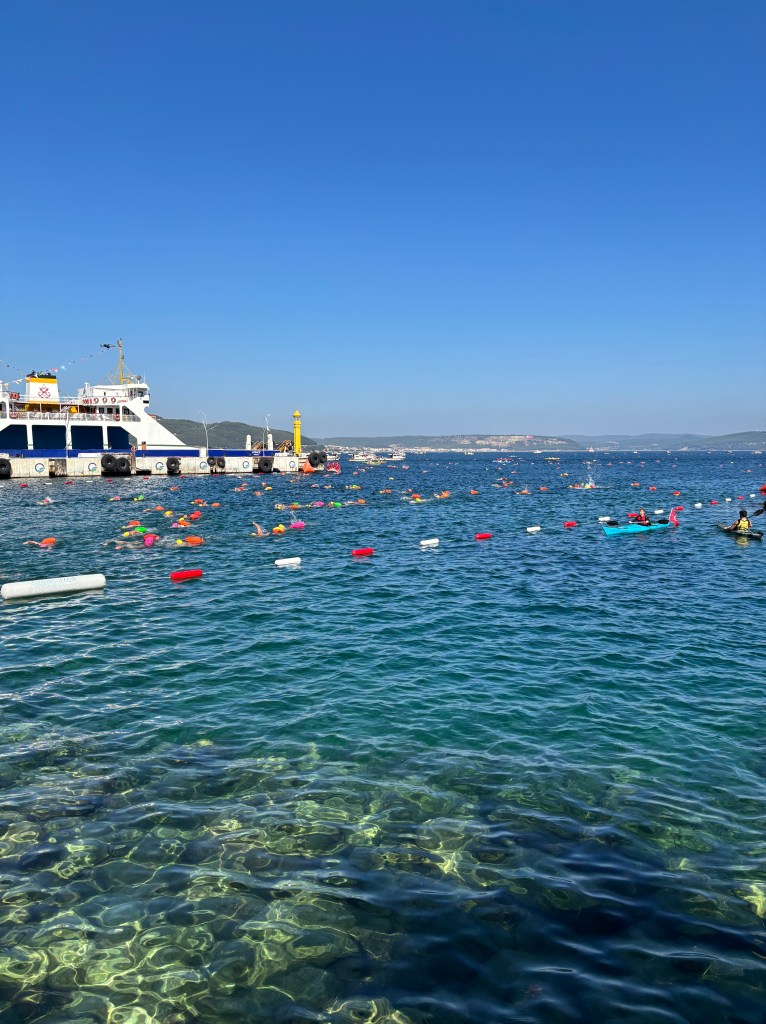 Although I swam three open water events over the summer, the one that I was really looking forward to was the intercontinental Hellespont & Dardanelles crossing which is an iconic swim of just under 5k from the European to Asian side of Turkey. It didn’t disappoint and it’s hard not to be evangelical about the whole experience. I’ve had to refrain from talking excitedly about it non-stop to random strangers, friends and family since I have returned. This isn’t easy when there is so much to like about this swim.